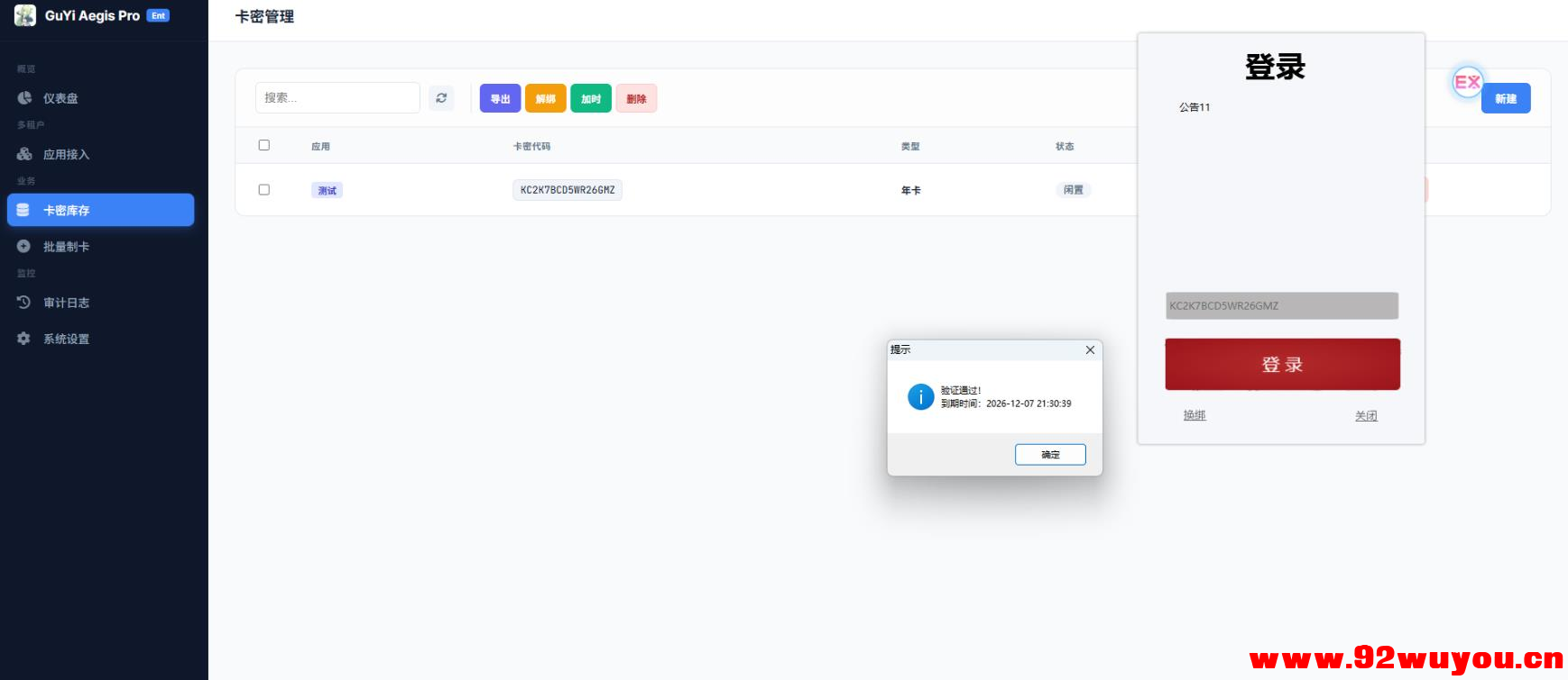 bg7.png卡密验证系统6.0源码完整开源分享, 支持api接入-附带易语言对接源码 支持网页验证[网站授权]支持易语言 Python、PHP、Java、C# 等 10种语言 的对接 支持生成小时卡、天卡、周卡等;支持多个软件共用一 ...