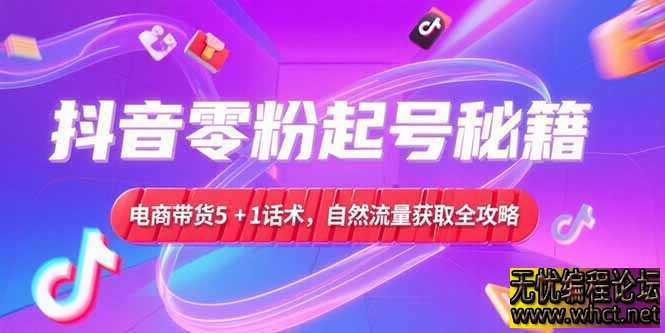 抖音零粉起号秘籍,电商带货5+1话术,自然流量获取实操流程课程简介 该课程专注于抖音电商带货从零起步的自然流量起号方法,包含四大核心模块:带货话术体系、七天螺旋起号技术、人为干预策略、流量影响因素分析,提 ...
